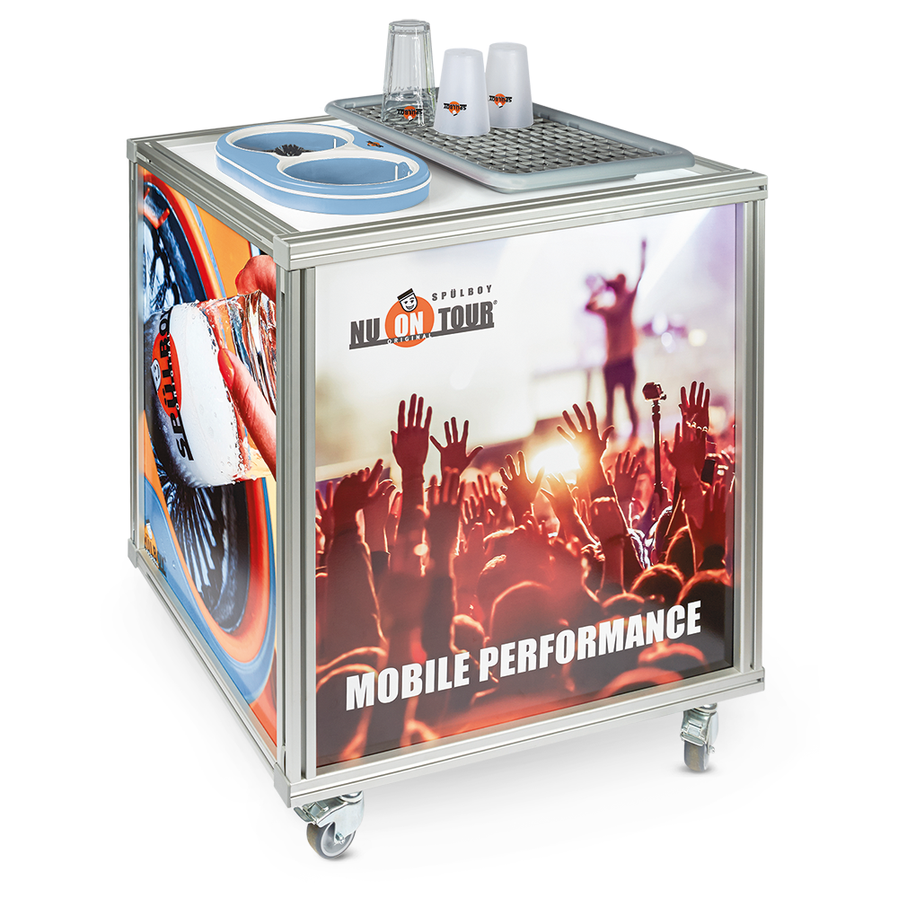 Mit mobilen NU® Spülstationen und einem durchdachten Aqua Management bringen wir kompromisslose Spülhygiene an jeden Ort dieser Welt. Ob Stadtfest, Konzert, Vereinsfeier oder Streetfood Event, unsere NU on Tour® Thekenlösungen bieten alles, was Sie für eine mobile und hygienisch einwandfreie Reinigung von Gläsern und Mehrwegbechern brauchen. Ihre Gäste können dadurch auf Veranstaltungen ihre Schankgefäße selbständig 100% hygienisch sauber spülen.