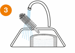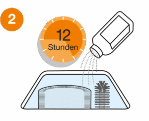 Einfach täglich! Entnehmen Sie die Bürsten aus dem SPÜLBOY® und legen Sie diese in ein Waschbecken oder Eimer mit warmem Wasser. Geben Sie nun eine Portion SPÜLBOY® Bürstenreiniger hinzu und lassen Sie diesen mind. 12 Stunden einwirken.