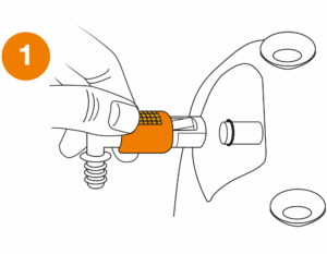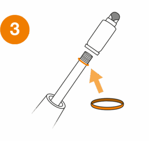 Wenn nicht, dann tauschen Sie den Dichtring aus und schrauben Sie das neue Kopfventil auf die Ventilstange und stülpen Sie den Glasschutz über das Kopfventil.