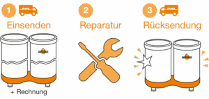 Nach Erhalt und Begutachtung des Gerätes versenden wir das reparierte Gerät bei Garantie oder Kulanz an Sie zurück. Bei anfallenden Reparaturkosten senden wir Ihnen einen Kostenvoranschlag.