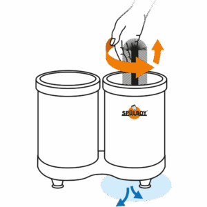 Quick & easy! Bei allen CLASSIC und ECO Geräten läuft das Wasser aus dem Vorspültopf ab, sobald Sie die Mittelbürste herausdrehen.