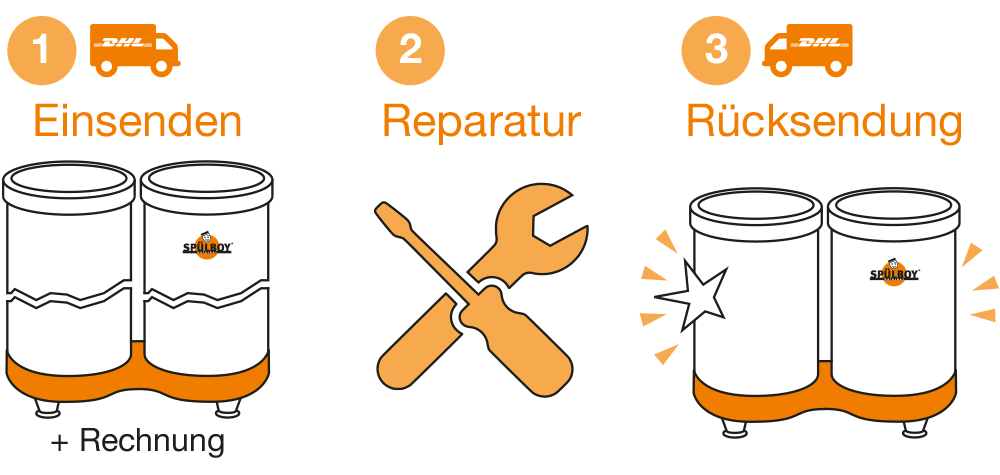 Sollte der SPÜLBOY® auf einen Defekt hinweisen, können Sie uns das saubere Gerät mit Fehlerbeschreibung und Kontaktdaten an folgende Adresse einsenden:
